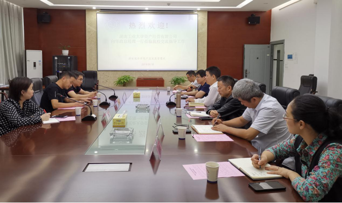2019年9月18日下午3点半,湖南工业大学资产经营公司总经理向华政一行来Beat365考察交流,我处处长熊创贤、副处长郭太平、资产公司财务总监刘翔等企业负责人陪同。