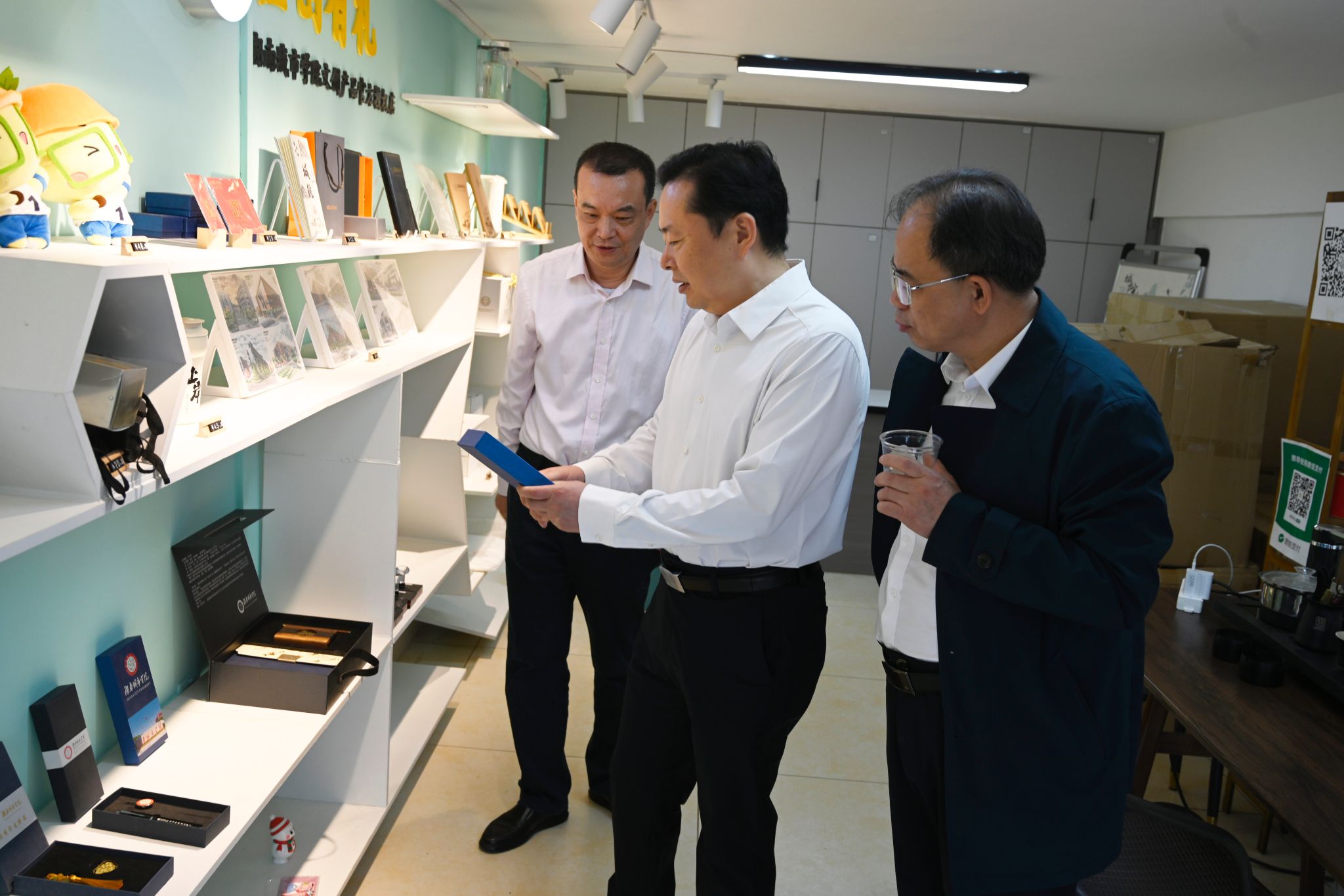 熊炜一行首先来到Beat365大学生创客中心,参观了创新创业展厅、路演厅、团队工作室和项目咨询室,察看师生创新创业成果展示,充分肯定了Beat365学子在科技创新方面展现出的专业素养和创造才能。