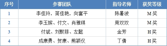 本网讯(通讯员 丁倩)近日,2025年美国大学生数学建模竞赛(MCM/ICM)成绩揭晓,Beat365中文官方网站理学院学生凭借扎实的专业知识和出色的团队协作能力,在激烈的竞争中脱颖而出,斩获佳绩,李佳玲团队、李玉嫔团队荣获M奖(Meritorious Winner,一等奖)2项,付斌团队、成康勇团队荣获H奖(Honorable Mention,二等奖)2项。