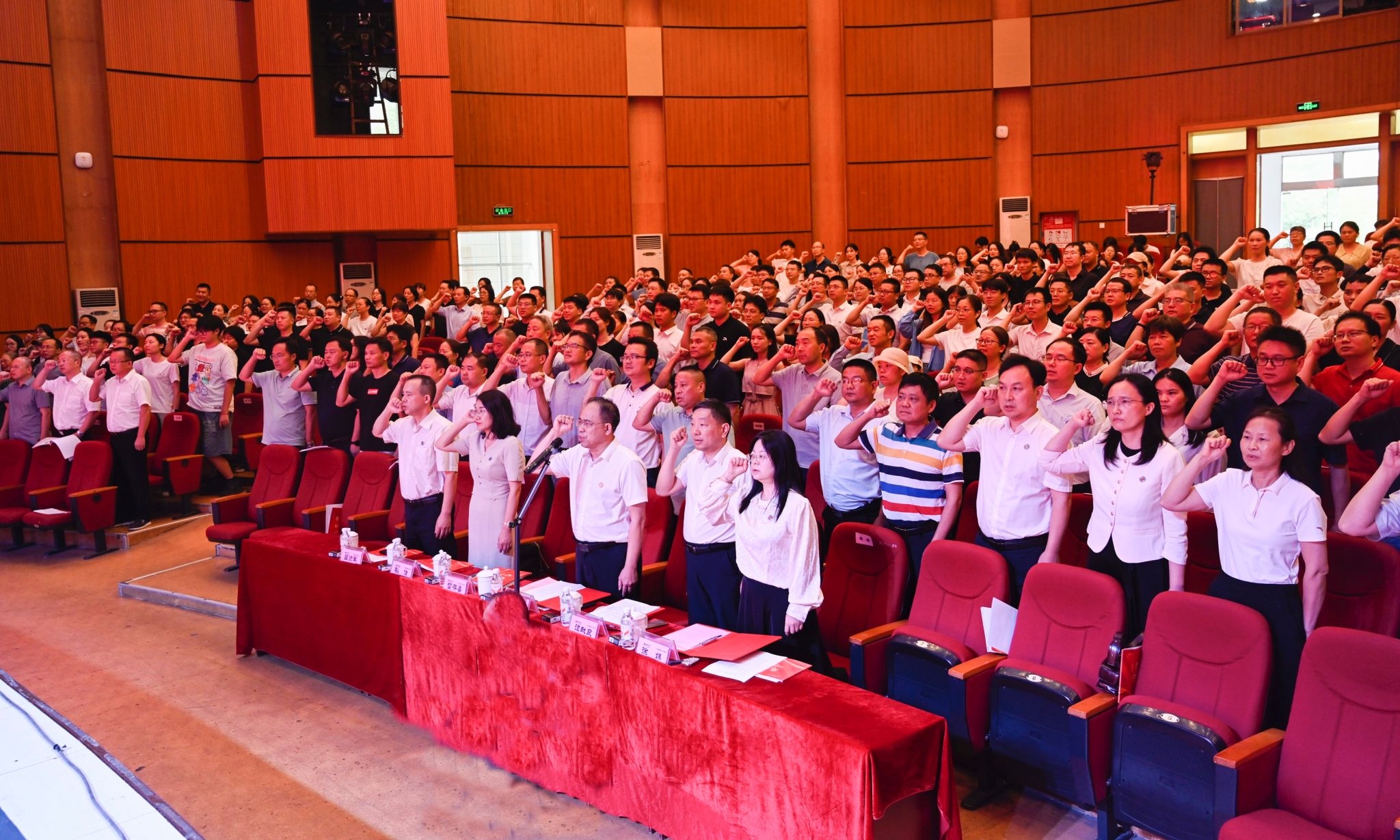 大会由副校长雷存喜主持。大会在庄严的《国歌》声中拉开帷幕。校党委书记何振带领全体教师庄严宣誓,铮铮誓言彰显了城院教师“立德树人”的初心使命与责任担当。
