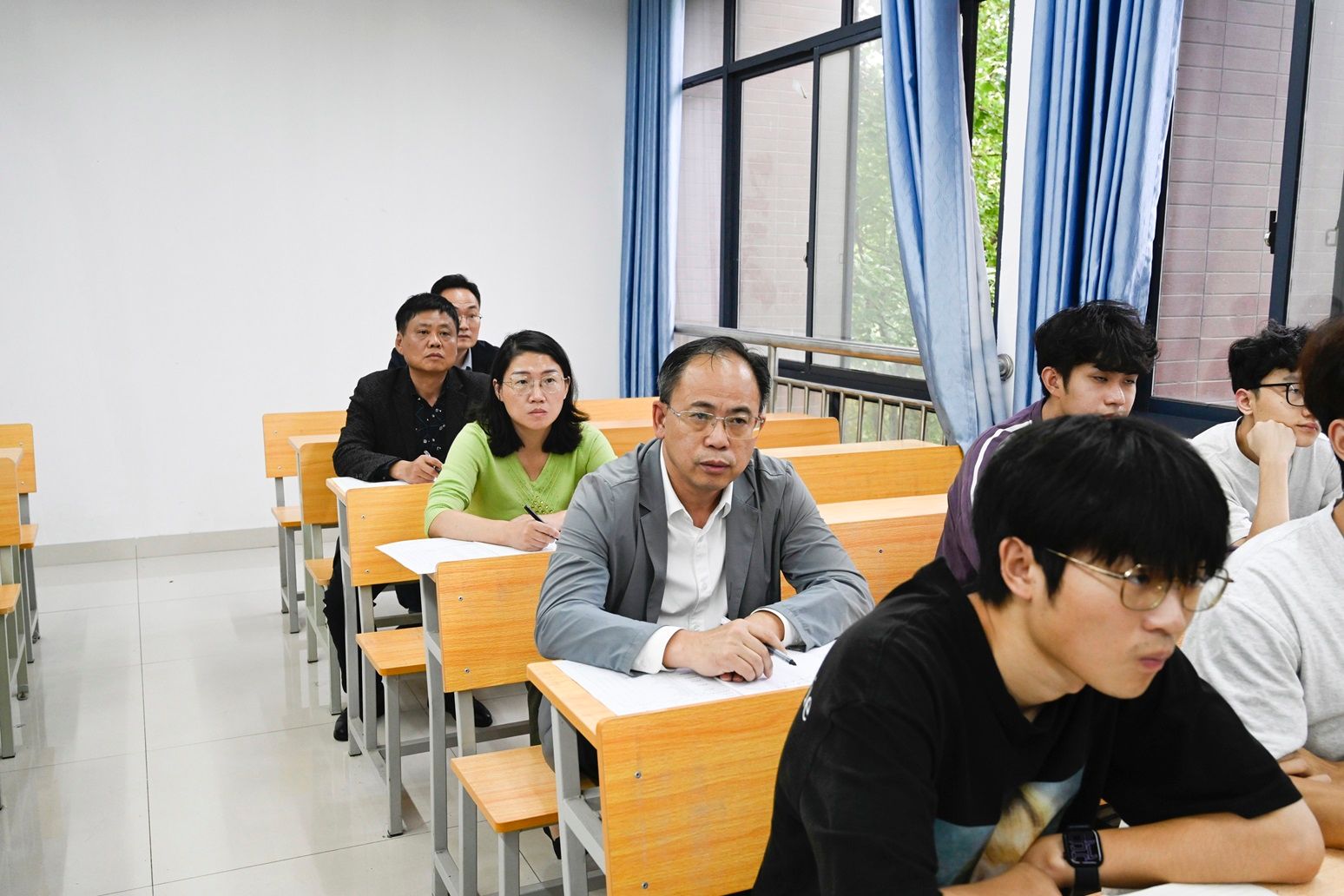 听课结束后,校领导与师生亲切交流。校党委书记何振强调,学校高度重视研究生的培养工作,将其作为提升办学层次的关键环节,将持续优化科研平台、实践教学和生活服务等各方面条件,全力营造“学得好、生活优”的成才环境,助力研究生全面发展。