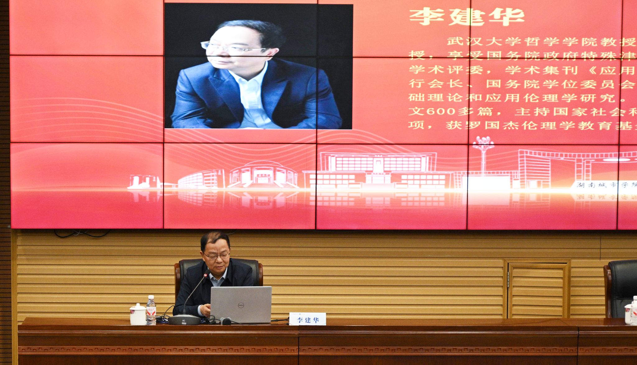 武汉大学应用伦理学研究中心主任、教育部“长江学者”李建华教授,以“城市高质量发展中的伦理秩序建构”为题,分享了城市发展与城市伦理的内在关联、中国城市化进程中的伦理失序、城市高质量发展的伦理秩序重建等内容。