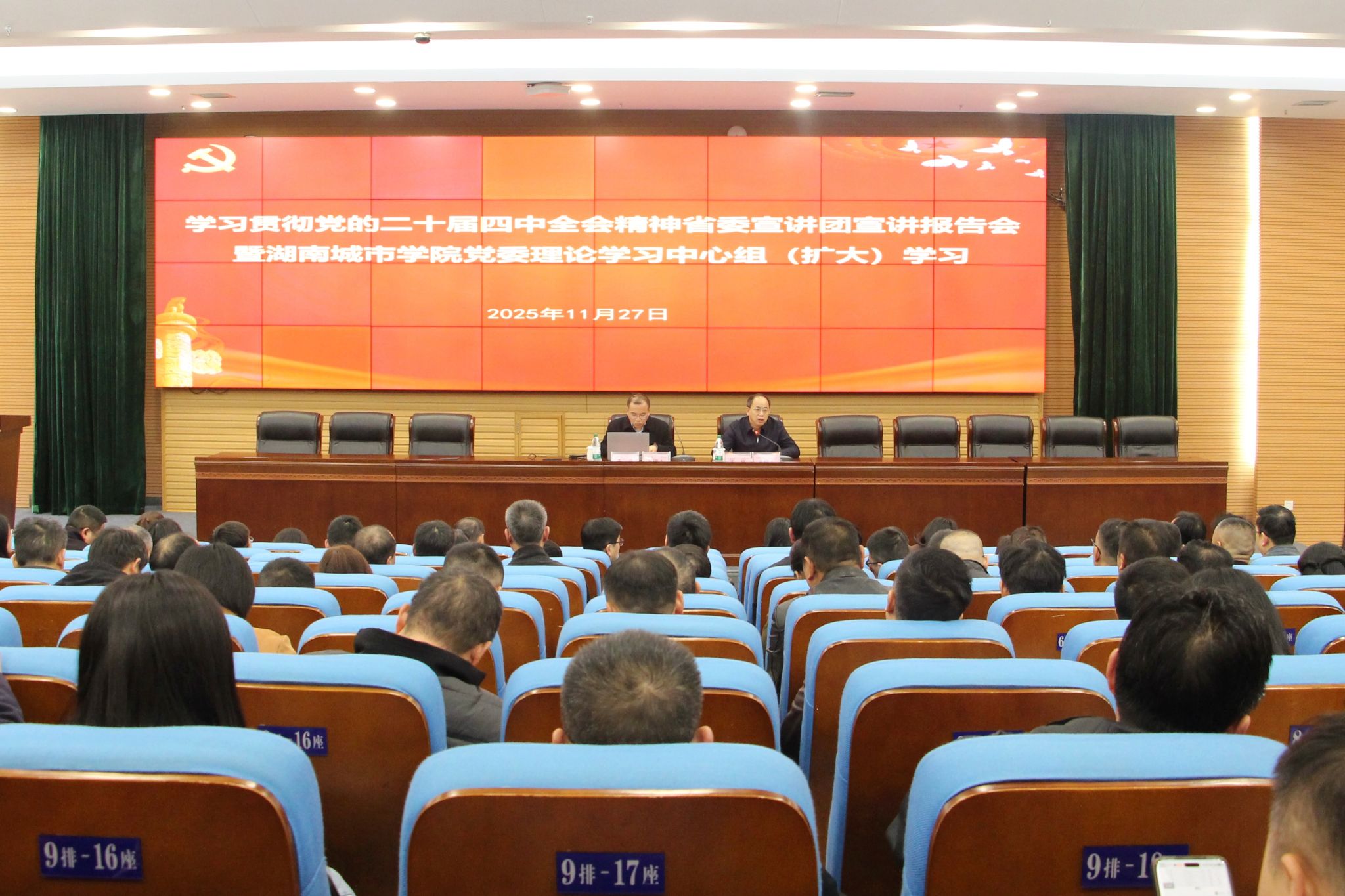 会上,牛磊以《科学谋划,精准发力,为2035年基本实现现代化奠定扎实基础》为题,对党的二十届四中全会精神进行了系统宣讲。他围绕全会审议通过的《中共中央关于制定国民经济和社会发展第十五个五年规划的建议》,全面解读了“十五五”时期的战略方位与发展脉络,深刻分析了党和国家事业取得的重大成就和发展环境面临的复杂变化,深入阐释了“十五五”时期的指导思想、主要目标、战略任务和重大举措。报告紧扣湖南省贯彻落实全会精神的具体部署,内容详实、条理清晰,为全校师生干部准确把握全会精神实质、系统擘画学校高质量发展新路径提供了科学指导。