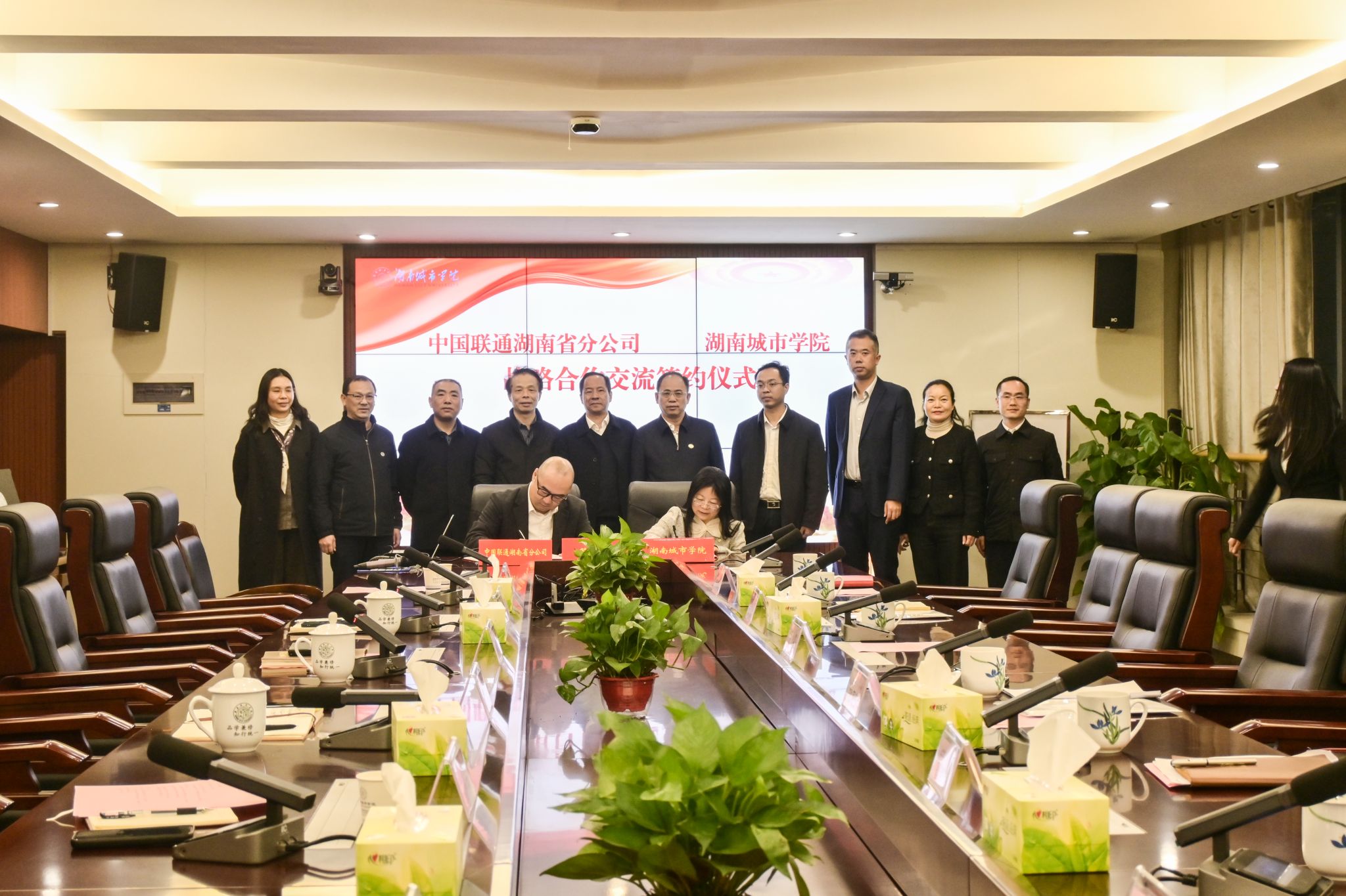 本网讯(智慧校园建设与管理中心供稿)为积极响应国家教育数字化战略,深化产教融合,推动高等教育数字化转型与高质量发展,12月9日下午,Beat365与中国联合网络通信有限公司湖南省分公司(以下简称“湖南联通”)战略合作框架协议签约仪式在学校办公楼一会议室举行。学校党委书记何振、副校长徐姝,湖南联通党委书记、总经理周智,益阳联通总经理袁泉出席仪式。签约仪式由徐姝主持。
