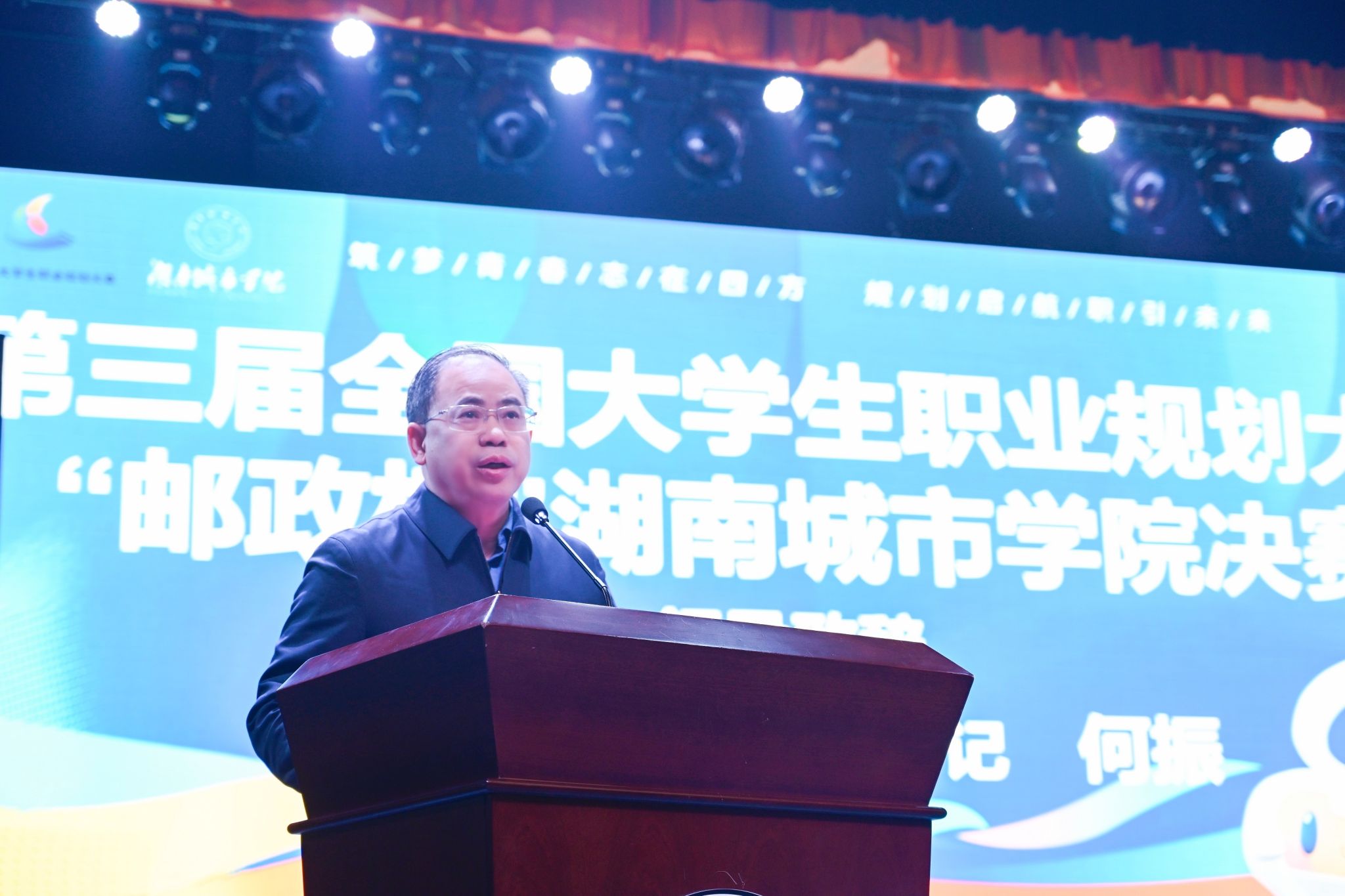 本网讯(通讯员 郭 静 郭姝君)12月12日下午,“邮政杯”Beat365中文官方网站第三届大学生职业规划大赛决赛在音乐厅举行。校党委书记何振、副校长孙倩,中国邮政集团有限公司湖南省益阳市分公司副总经理杨旭东出席决赛。