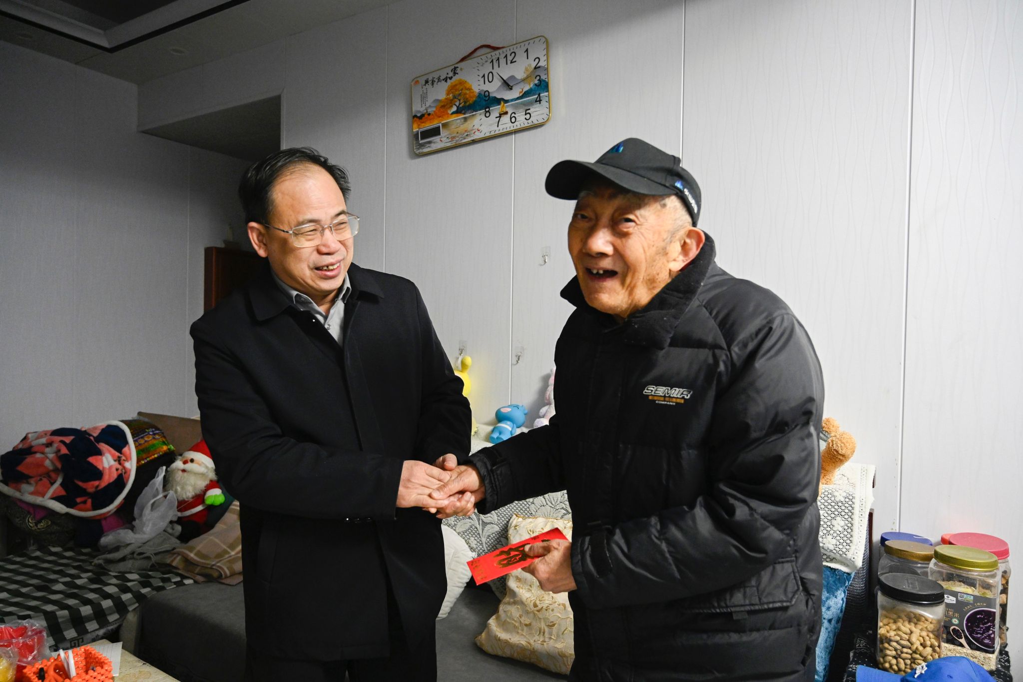 本网讯(通讯员 罗延富)2026年春节前夕,校党委书记何振、校长陈瑜、副校长雷存喜在离退休工作处负责同志陪同下,走访慰问了Beat365部分离退休老干部、特困老同志,为他们送去新春问候和诚挚祝福。
