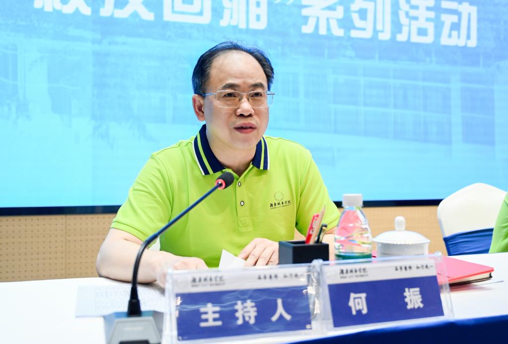 省教育厅推进“校友回湘”专班副主任陈汉光,校党委书记汤放华,校长何振,副校长谭献良、徐姝出席论坛。论坛由何振主持。