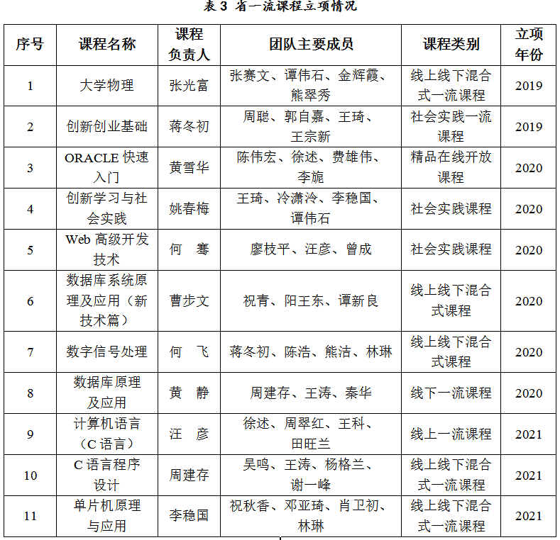 通过引进、认证、激励“三个机制”,校外引进、校内培养、校企联合培养“三项措施”,建设一支具备课堂教学和工程应用开发能力的“双师双能型”高水平教师队伍。制定和完善《实践指导教师考核办法》等管理制度,探索教师实践能力培养长效机制,与企业建立“双向挂职”运作模式。加强教学科研团队建设,多途径提高教师综合素养。开展青年教师导师制,加速青年教师成长。近年来,学院博士内培8人,引进12人,新增双师双能型教师80人;晋升教授5人、副教授10人,获省级科技创业领军人才1人、121人才工程2人、青年骨干教师4人;获教学科研项目国家级3项,省级15项,获省级教学竞赛奖3项,获校级“师德标兵”“师德先进个人”“优秀教师”等荣誉19人。