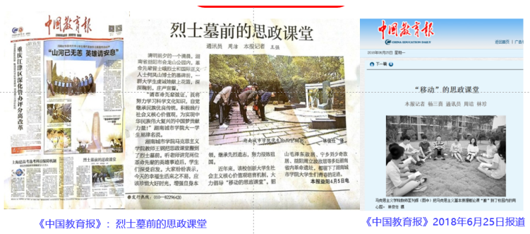 我院思政课教学近年来获得湖南省教学成果奖一等奖1项、湖南省教育科学研究优秀成果奖三等奖,立项教育部优秀教学科研团队建设项目1项、教育部青年项目1项,省教改项目、思政工作项目30多项。立项湖南省精品在线开放课程团队2门,省一流本科课程团队3门,省思政课教师中青年骨干建设项目1项。全省思政课教学竞赛一等奖1项、二等奖4项、三等奖10余项。