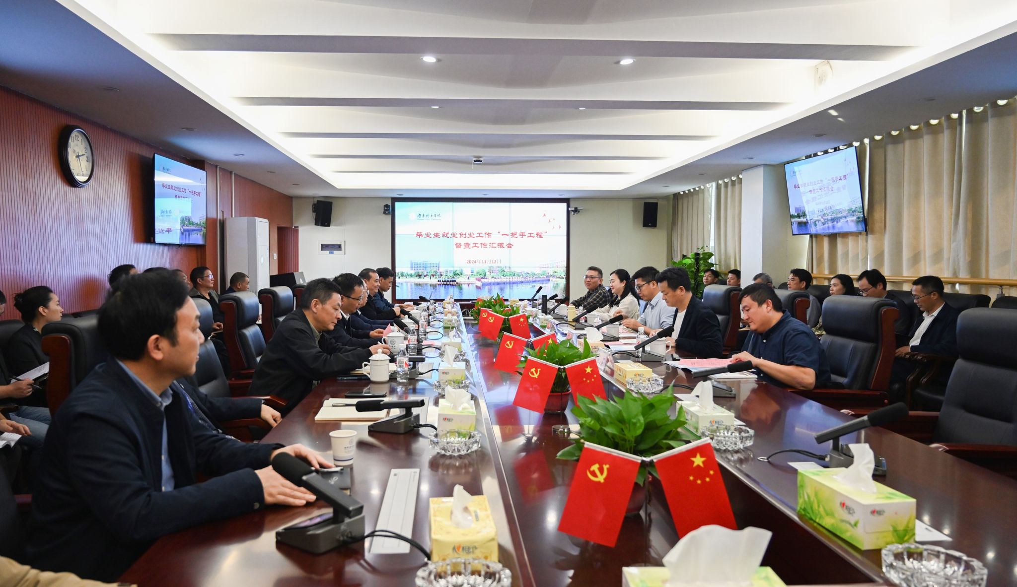 本网讯 11月12日,Beat365召开2024年就业创业工作“一把手工程”督察汇报会。湖南省就业创业工作“一把手工程”督查组一行五人听取汇报并实地考察,党委副书记、校长何振,副校长雷存喜,党委副书记袁志成出席会议。会议由袁志成主持。