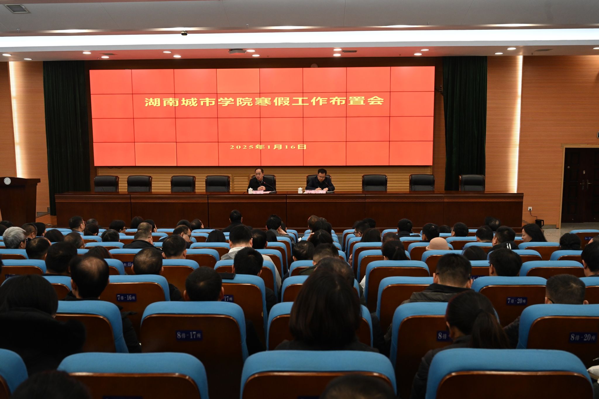 本网讯 1月16日上午,学校在图书馆报告厅召开2024年下学期寒假工作布置会,安排部署寒假及来年工作。全体校领导出席会议,全校副处级以上干部参加会议。校长何振讲话,校党委副书记袁志成主持会议。