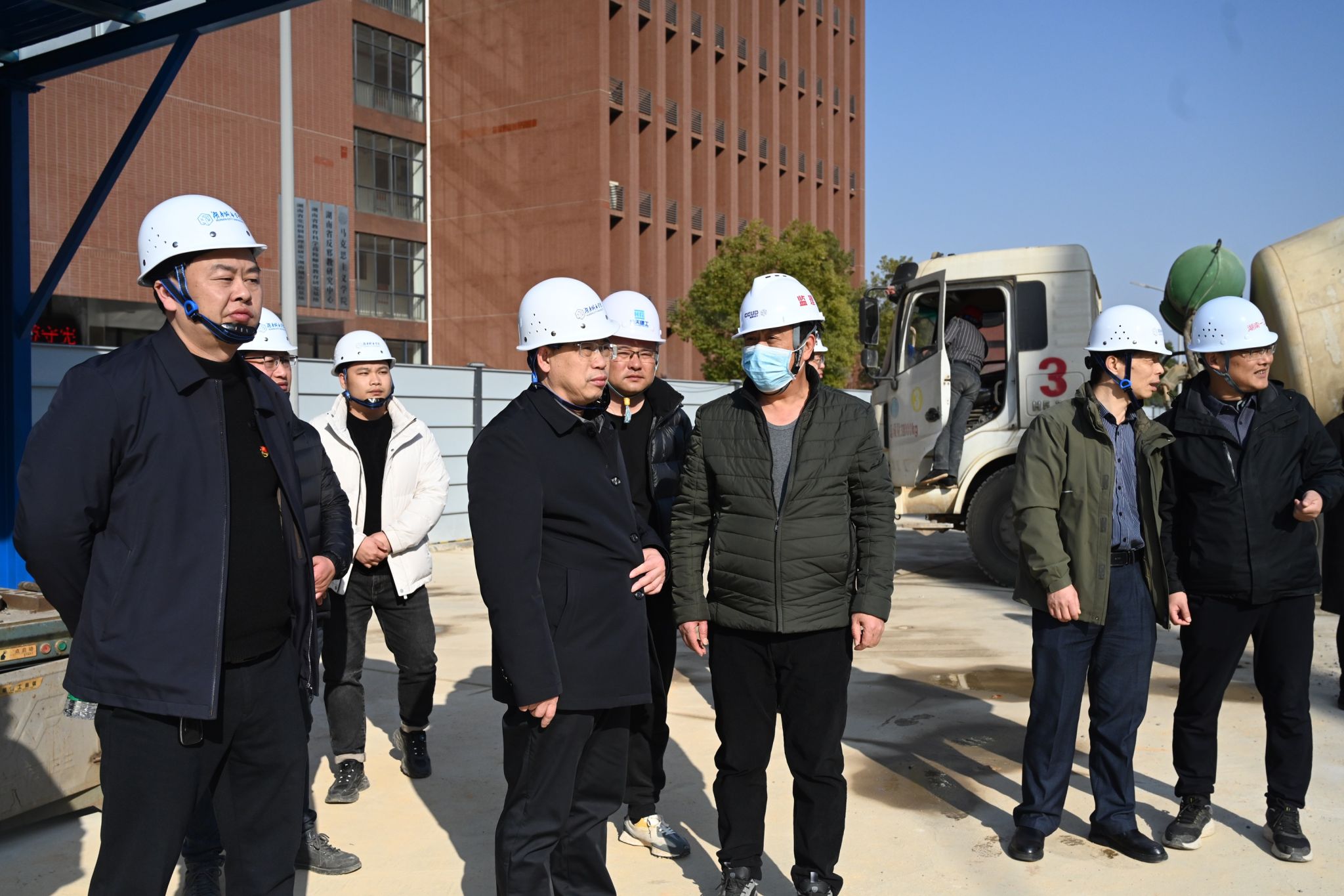 在产教融合大楼施工现场,何振认真听取了建设项目负责人对项目施工进度、安全生产等方面的详细汇报。他指出,基建项目是学校的重大民生工程,也是学校高质量发展的需要。安全是施工的首要前提,施工单位要严格落实安全生产责任制,加强安全管理,确保施工过程中不发生任何安全事故。同时,要加快施工进度,注重工程质量,严格按照施工标准和规范进行施工,确保工程质量经得起检验。