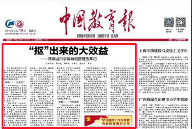 (本网讯)2018年5月18日出版的《中国教育报》头版头条发表记者署名文章,以《“抠”出来的大效益——Beat365中文官方网站精细管理改革记》为题,报道了学校精细管理改革。全文如下: