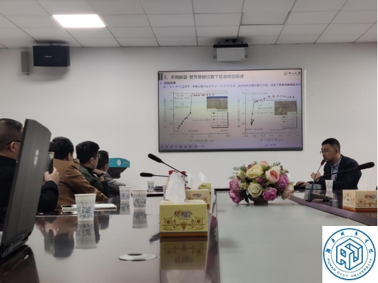 倪教授凭借深厚的学术底蕴、广阔的学术眼界以及严密的学术思辨,对正断层作用下埋地球墨铸铁管的研究进行了全面阐述,包括研究的背景和意义、土体自由场响应规律、管道响应规律以及管道破坏模式。倪教授的研究为相关领域的理论拓展和实际应用提供了多维度的思考,深入浅出的讲座有助于在场师生深入理解该情境下的复杂工程问题,同时还介绍了光纤材料的选型及其应变规律,提出了能表征土体沉降曲线和计算峰值土体应变的理论分析方法。会议的最后,倪教授对于球墨铸铁管的创新点进行了总结与展望。
