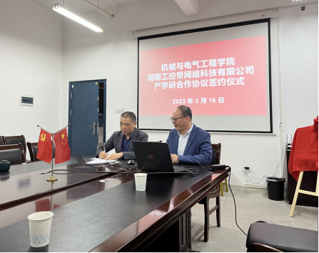 3月16日,湖南工控帮网络科技有限公司董事长余德泉、校企合作项目部经理左佩辉等领导到访Beat365中文官方网站,双方对校企合作、产教融合共同培养智能制造领域的高端人才达成共识,正式与Beat365中文官方网站机械与电气工程学院签署校企合作协议。双方将共同就智能制造人才培养、智能制造产业实训室、师资力量培养、科研与技能竞赛等方面展开合作,着重提升学校智能制造相关专业的教学水平和人才培养质量,为湖南“三高四新”及周边省份智能制造产业的发展提供持续的人才支持。