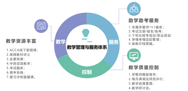除了配备常规教辅老师负责日常教学与管理之外,本专业额外配备了专职班主任与学管老师,对同学们进行ACCA新学员注册/报考/备考等全过程细致辅导。并通过教学研讨会、每月课调、学管督学等措施严格把控教学质量,帮助学生高效完成各阶段学习任务,提高ACCA考试通过效率。