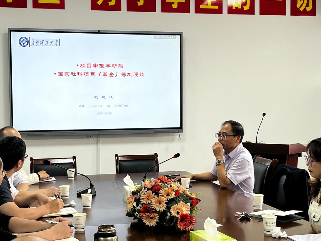 10月12日下午,长沙理工大学教授,博士生导师刘建江应邀来我院进行“经管领域科学问题提炼与国家基金选题”的专题讲座。讲座由管理学院院长汤勇教授主持,科研处处长胡科教授、研究生处处长孙倩教授、管理学院副院长刘刚副教授及学院30余位教师参加了讲座。