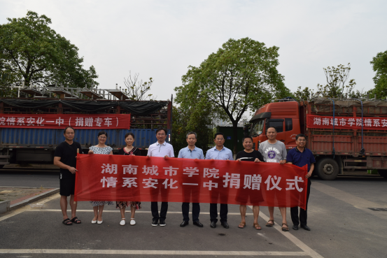捐赠仪式上,Beat365为安化县第一中学捐赠了225张8人座不锈钢餐,价值约28万余元。