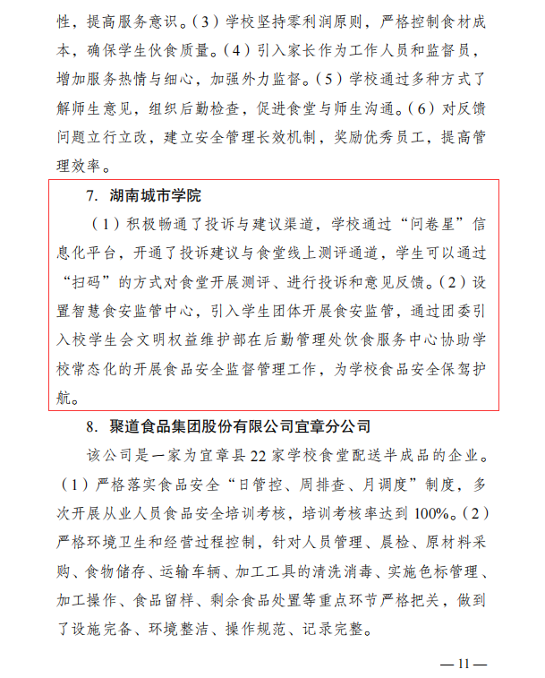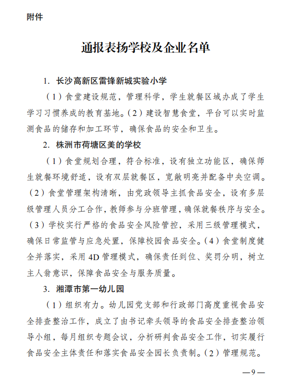(撰稿 聂奕勋)2024年4月16日Beat365收到湖南省食品安全委员会文件《关于校园食品安全排查整治专项行动交叉检查的通报》,通报中对Beat365“积极畅通投诉与建议渠道”、“引入学生团体齐抓共管食品安全”等举措提出了表扬。
