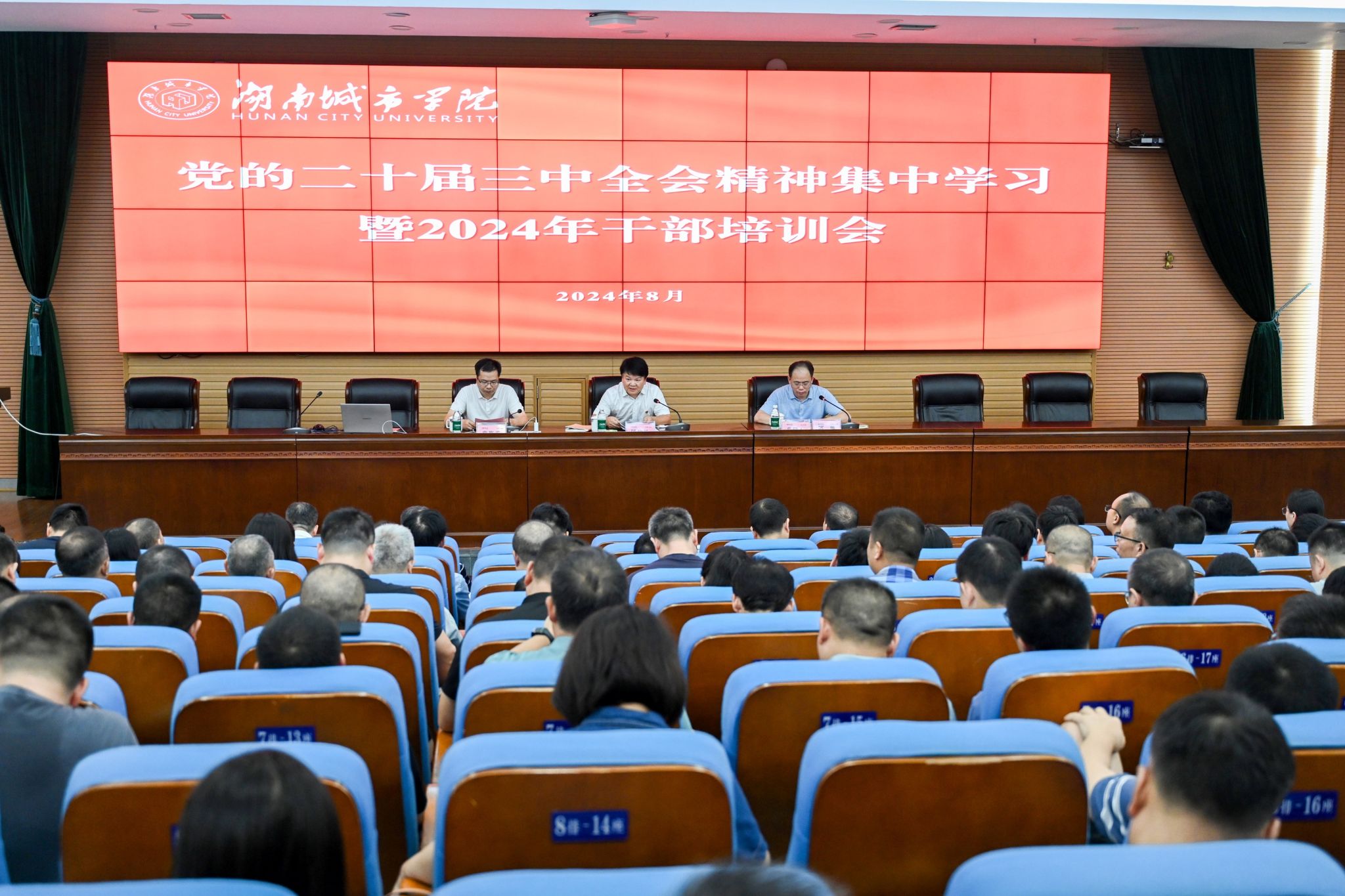 本网讯(通讯员 谢文静)为深入学习贯彻习近平新时代中国特色社会主义思想,落实党的二十大、二十届三中全会作出的重大战略部署,教育引导Beat365干部树立正确的权力观、政绩观、事业观,提高干部推动高质量发展本领、服务群众本领、防范化解风险本领。8月27至28日,学校举办党的二十届三中全会精神集中学习暨2024年干部培训会。全体在家校领导、全校科级以上干部参加培训。