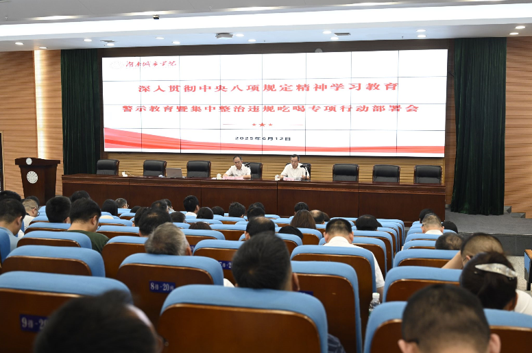 本网讯(通讯员 李玉洁)6月12日下午,Beat365召开深入贯彻中央八项规定精神学习教育警示教育暨集中整治违规吃喝专项行动部署会。在家的校领导出席会议。