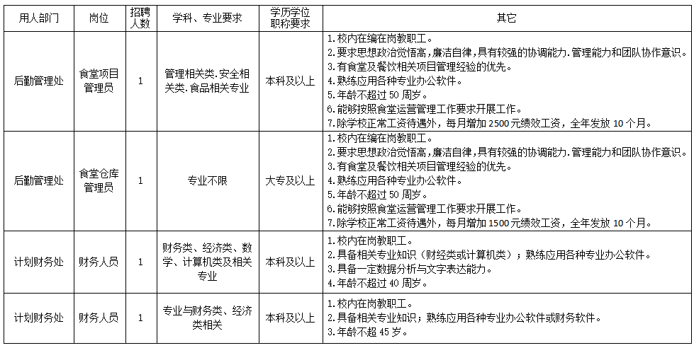 招聘后勤处自营食堂项目管理员、仓库管理员各