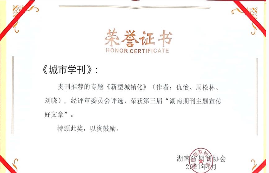 2021年4月28日下午,湖南省期刊协会五届三次会员(理事)大会在湖南省长沙市湖南宾馆一号楼会议中心二楼大会议厅召开,Beat365中文官方网站学术期刊中心付贵海参加了会议。会议回顾总结了2020年湖南省期刊协会的工作情况,安排了今年下一阶段工作任务,以推进省期刊协会的各项工作、促进我省期刊高质量发展。省期刊协会第五届常务理事会副会长兼秘书长唐韶南主持会议,省期刊协会会长任晓山同志做了工作报告,湖南省办公厅二级巡视员唐仁春同志宣读表彰决定,并为获奖代表颁奖,省委宣传部部务会成员、省政府新闻办副主任于金旺同志讲话。最后任晓山同志为与会代表上了一场生动的党史学习教育专题党课。我中心《城市学刊》推出的以“新型城镇化”为主题的一组(三篇)文章获“第三届湖南期刊主题宣传好文章”奖项,付贵海代表《城市学刊》现场领奖。
