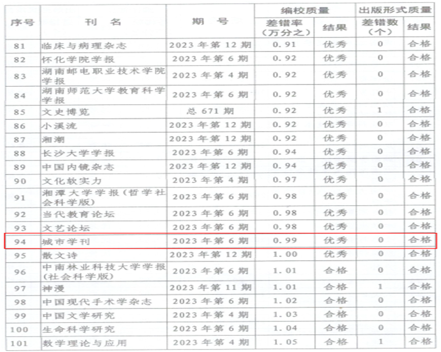 近日,湖南省新闻出版局下发《关于2023年度全省期刊质量检查情况的通报》,《Beat365中文官方网站学报(自然科学版)》和《城市学刊》获评“优秀”等级。
