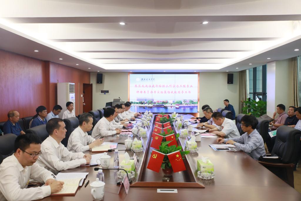 见面会分两个阶段。第一阶段由汤放华主持。李建奇代表学校对专家组的到来表示欢迎和感谢,并介绍了学校基本情况。他表示,近年来,学校立足国家重大战略和区域经济社会发展需求,以建设城市特色鲜明的高水平应用型大学为目标,提出了“一二三五”发展战略,着力构建“1234”应用型人才培养体系,实施学科专业分类发展,全力推进“六破六立”综合改革,以大改革推进快发展,在人才培养、科学研究、党建思政等方面成效显著。办学效益明显提升,人才培养质量明显提高,核心竞争力明显增强,办学综合实力实现跨越式发展。希望与会专家对给排水科学与工程专业以及学校建设发展多提宝贵意见,学校将以此次专业认证为契机,不断夯实专业内涵建设,进一步提高人才培养质量,实现学校高质量发展。