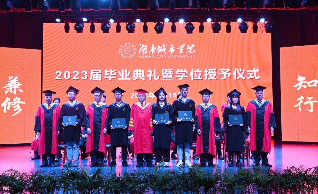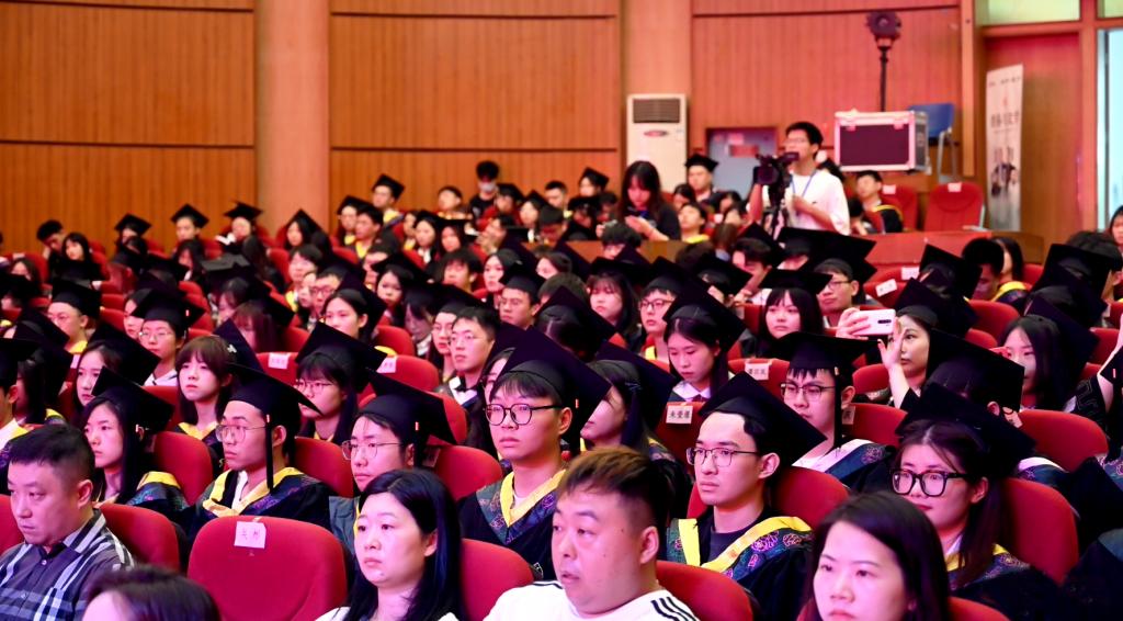 毕业生代表、湖南省优秀学生党员、土木工程学院杨润益回忆了他懵懂青涩、滚烫沸腾的青春和成长故事,对母校的悉心栽培和关爱表达感激,表示将用青春的智慧和汗水,谱写新时代城院学子璀璨的青春华章,在社会的各行各业中尽情施展才华,让青春在全面建设社会主义现代化国家的火热实践中绽放绚丽之花。