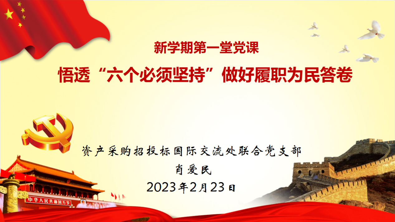 2023年2月23日下午,资产处、采购与招投标管理中心、国际交流处联合党支部在一办公楼131室组织开展了“主题党日”集中学习,党支部书记肖爱民主持,支部全体党员参加。